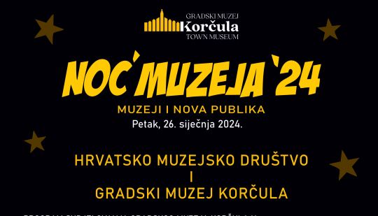 Noć muzeja u Gradskom muzeju Korčula prigoda je predstaviti aktivnosti koje su ostvarene tijekom protekle godine. Jedna od njih je realizacija programa „Muzejski predmet i njegov mediteranski kontekst“ koji je započeo u povodu Međunarodnog dana muzeja u svibnju 2023., te se nastavio u studenom 2023. u povodu Dana Mediterana.