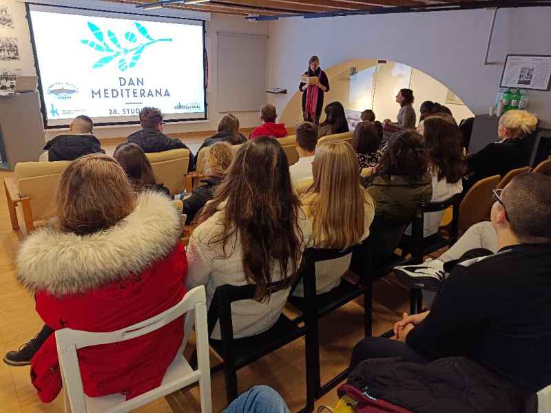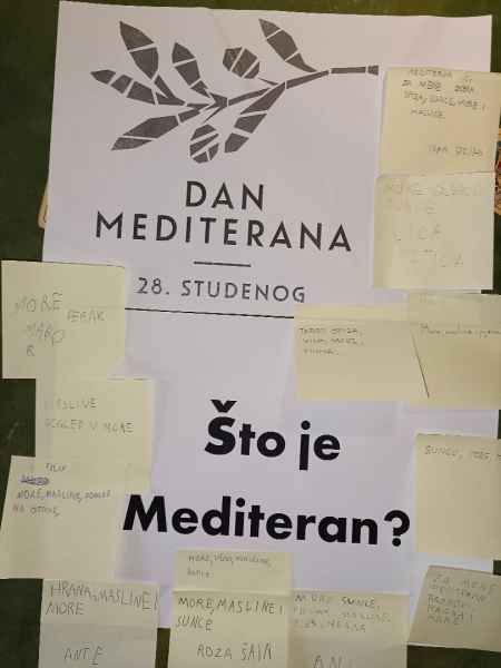 Poslijepodne, srednjoškolci su imali priliku poslušati kratko predavanje o važnosti Dana Mediterana za Korčulu te svoje dojmove staviti u kontekst Korčule na Mediteranu. Sutradan su nam najmlađi naraštaj iz škole u Račišću, nakon predavanja i video projekcije dali svoje odgovore na ovogodišnje pitanje 'Što je Mediteran?'